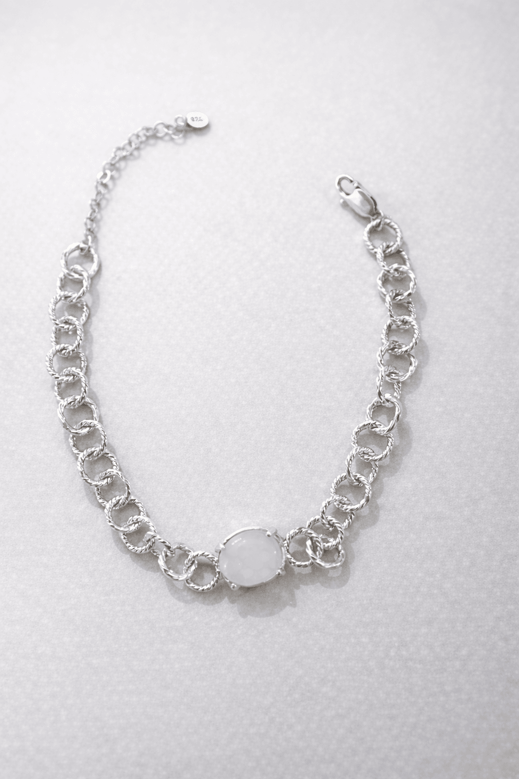 925 ayar gümüşten üretilen bu bileklik, ortasında yer alan süt rengi taşıyla sade ve şık bir görünüm sunar. Ayarlanabilir zinciri sayesinde farklı bilek ölçülerine uyum sağlar. Özel hediye kutusunda gönderilmesiyle sevdiklerinize anlamlı bir hediye alternatifi oluşturur.