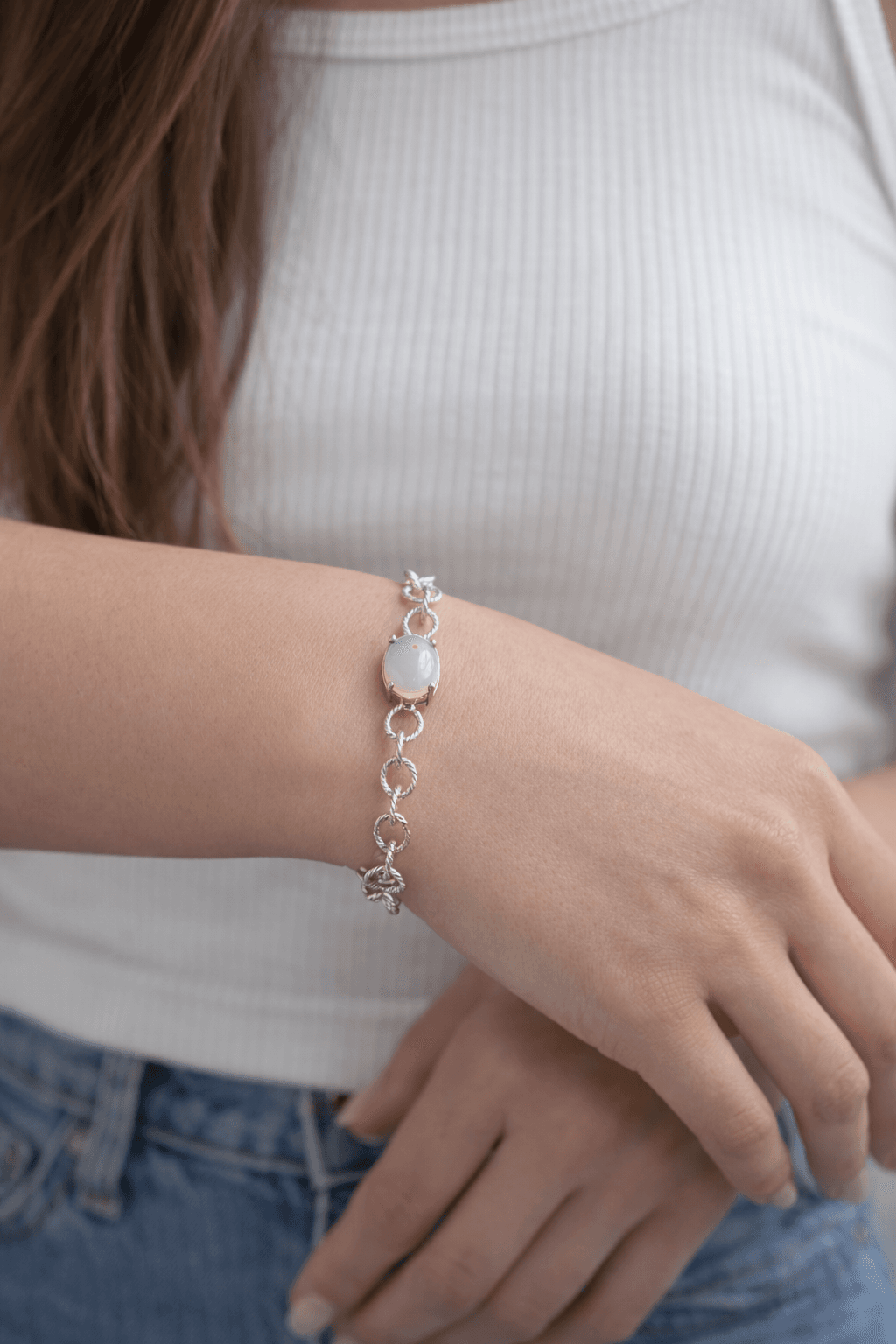 925 Ayar Gümüş – Süt Rengi Taşlı Bileklik