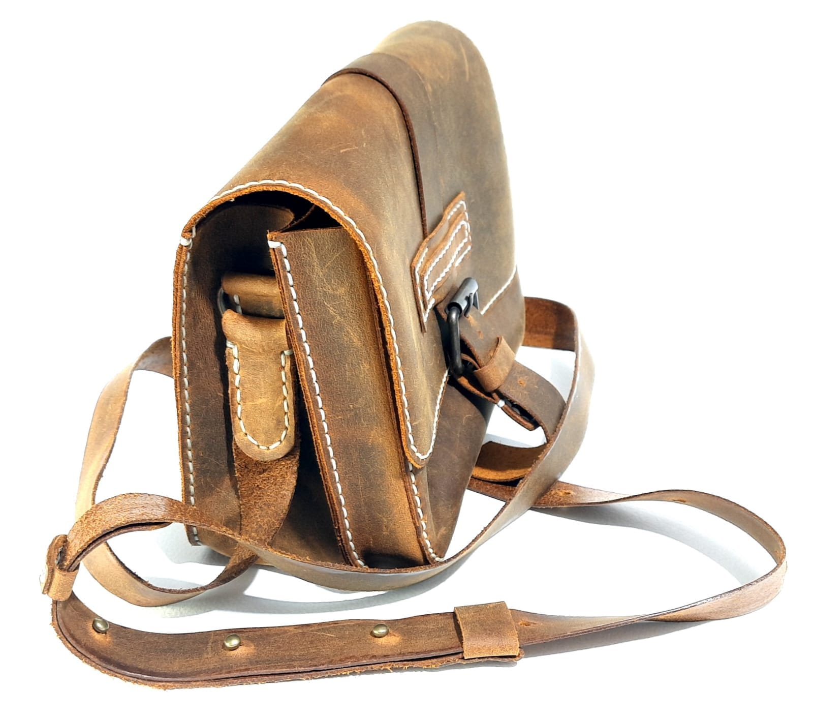 Doğal dokulu hakiki deriden üretilen vintage tarz omuz çantası; zamansız tasarımı, ayarlanabilir askısı ve kompakt yapısıyla günlük kullanım için idealdir.