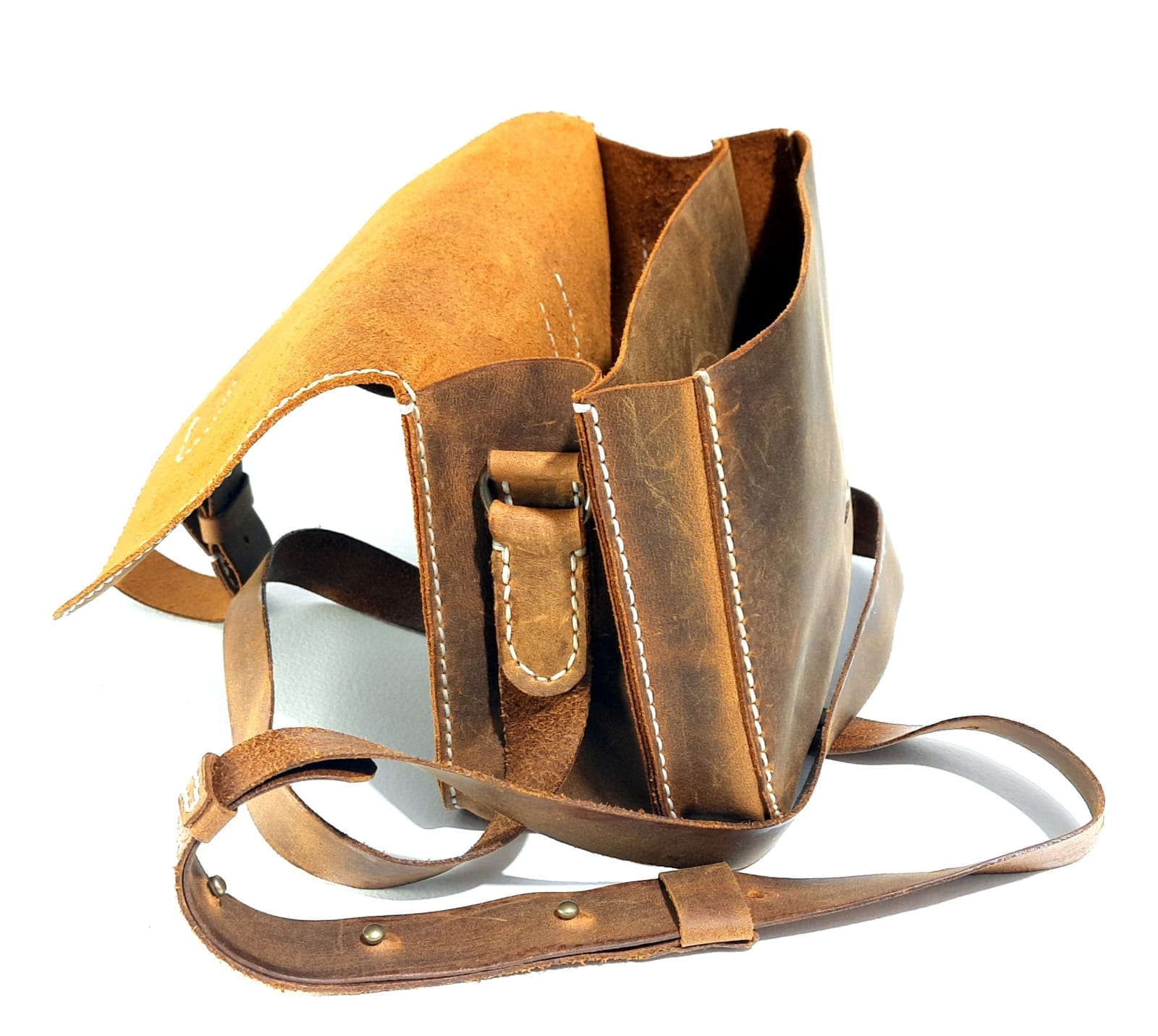 El Yapımı Hakiki Deri Hardal Çanta