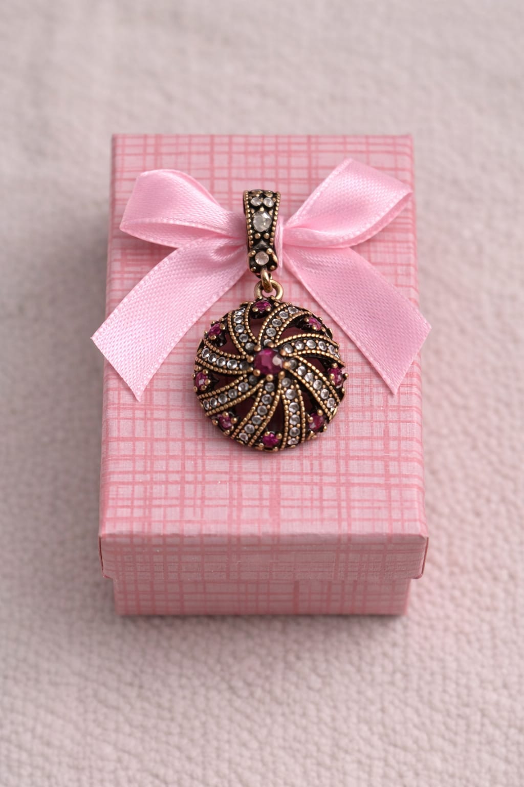 Bombeli Yakut & Swarovski Taşlı Bronz – Gümüş Kolye Ucu